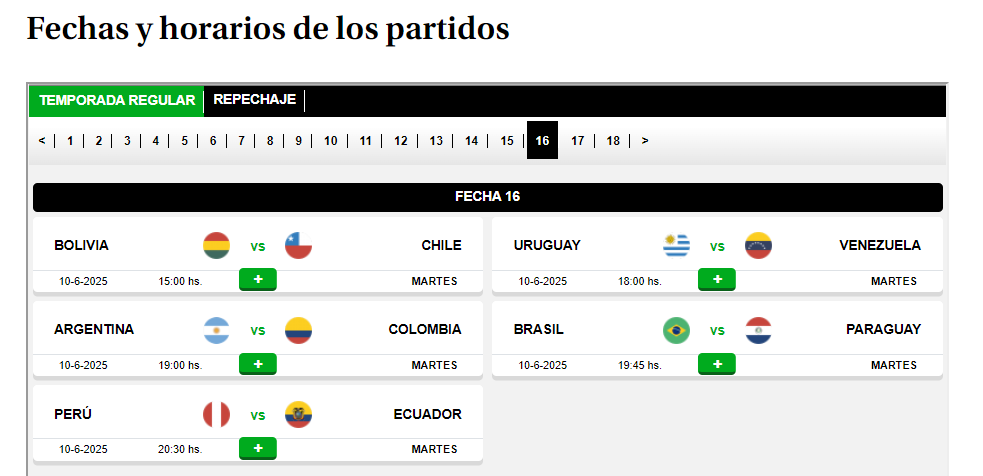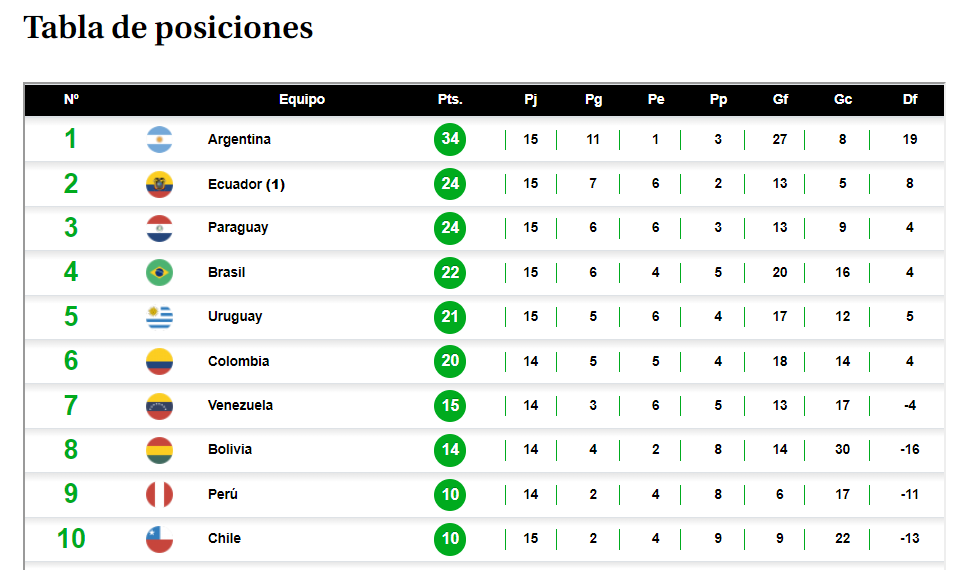 Revise la tabla de posiciones, los horarios de los partidos y los goleadores de las Eliminatorias sudamericanas al Mundial de Estados Unidos, México y Canadá 2026.
