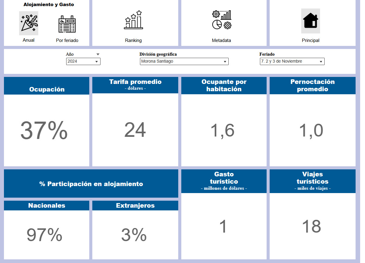 La tasa de ocupación hotelera en noviembre del año 2024 en la provincia de Morona Santiago fue del 37%.